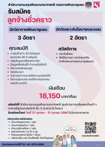 - ตำแหน่งนักวิชาการพัฒนาชุมชน จำนวน 3 อัตรา