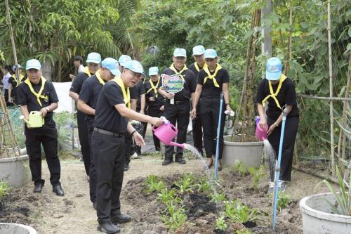 นายไพโรจน์ โสภาพร รองอธิบดีกรมการพัฒนาชุมชน เป็นประธานในการจัดกิจกรรมฯ นางนุสรา ธรรมฤาชุ พัฒนาการอำเภอบางบัวทอง พร้อมด้วยเจ้าหน้าที่พัฒนาชุมชนอำเภอ และผู้นำอาสาพัฒนาชุมชน (ผู้นำ อช.) เข้าร่วมกิจกรรมจิตอาสาพระราชทาน กิจกรรมประกอบด้วย การกล่าวถวายอาลัย ยืนสงบนิ่ง ปลูกต้นไม้พืชผักสวนครัว ปล่อยปลานิลจิตลดา การให้อาหารปลา การเยี่ยมชมศูนย์เรียนรู้การพัฒนาคุณภาพชีวิตตามหลักทฤษฎีใหม่ ประยุกต์สู่ "โคก หนอง นา" พื้นที่แบบอารยเกษตร โดยนายสินชัย ทองมั่ง ประธานศูนย์เรียนรู้การพัฒนาคุณภาพชีวิตตามหลักทฤษฎีใหม่ ประยุกต์สู่ "โคก หนอง นา" พื้นที่แบบอารยเกษตร นำเยี่ยมชมพื้นที่ และบอกเล่าแนวทางการพัฒนาศูนย์เรียนรู้ฯ ให้เป็นศูนย์รวมทางจิตใจของชุมชน กิจกรรมการพัฒนา สร้างโอกาสให้แก่คนในชุมชน และการพัฒนาพื้นที่วัดให้เป็นศูนย์เรียนรู้เกษตรทฤษฎีใหม่ “โคกหนอง นา” ตามหลักปรัชญาของเศรษฐกิจพอเพียง ตลอดจนเยี่ยมชมฐานเรียนรู้ภายในศูนย์ฯ ประกอบด้วยฐานเรียนรู้ต่าง ๆ ในด้านการเกษตรตามหลักทฤษฎีใหม่ และศาสตร์พระราชา ซึ่งผู้ที่สนใจสามารถเข้ามาเยี่ยมชม ศึกษาหาความรู้เพื่อนำไปต่อยอดการดำรงชีวิต ภายในศูนย์เรียนรู้ ฯ มีการบริหารจัดการพื้นที่ตามแนวทางโคก หนอง นา โมเดล นำหลักการธนาคารน้ำใต้ดินมาใช้เพื่อให้ดินมีความชุ่มชื้นตลอดปี บำรุงดินให้มีความเหมาะสมกับการเพาะปลูก ร่วมสร้างและพัฒนาพื้นที่วัดเรื่อยมาให้เป็น ศูนย์เรียนรู้เกษตรทฤษฎีใหม่ “โคก หนอง นา” ด้วยความร่วมมือระหว่างวัด ชุมชน และหน่วยงานภาคีเครือข่ายการพัฒนา