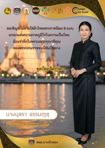 สำนักงานพัฒนาชุมชนอำเภอบางบัวทอง ขอเชิญชวนสวมใส่ชุดไทยพระราชนิยม 8 แบบ