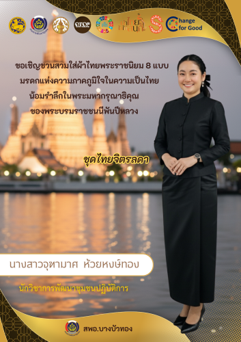 สำนักงานพัฒนาชุมชนอำเภอบางบัวทอง ขอเชิญชวนสวมใส่ชุดไทยพระราชนิยม 8 แบบ