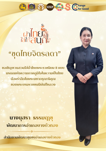 สำนักงานพัฒนาชุมชนอำเภอบางบัวทอง ขอเชิญชวนสวมใส่ชุดไทยพระราชนิยม 8 แบบ
