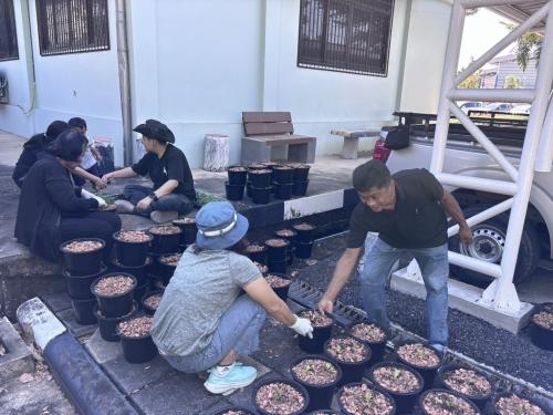 นายไพโรจน์ จึงธนาเจริญ นายอำเภอบางบัวทอง พร้อมด้วยหัวหน้าส่วนราชการ ข้าราชการ กำนันตำบลบางบัวทอง ผู้ใหญ่บ้านหมู่ที่ 4 ตำบลบางบัวทอง พร้อมด้วยผู้ช่วยผู้ใหญ่บ้าน และผู้นำอาสาพัฒนาชุมชน (ผู้นำ อช.) ของอำเภอบางบัวทอง ร่วมกิจกรรม “ผู้นำต้องทำก่อน” ขับเคลื่อนกิจกรรมเพื่อคุณภาพชีวิตที่ดีและมีความมั่นคงทางอาหาร โดยร่วมกัน ปลูกผักสวนครัว และพืชสมุนไพร ณ บริเวณบ้านพักนายอำเภอ เพื่อส่งเสริมให้ผู้นำในทุกระดับเป็นต้นแบบในการดำเนินชีวิตตามหลักปรัชญาของเศรษฐกิจพอเพียง ลดรายจ่ายในครัวเรือน และสร้างความมั่นคงทางอาหาร