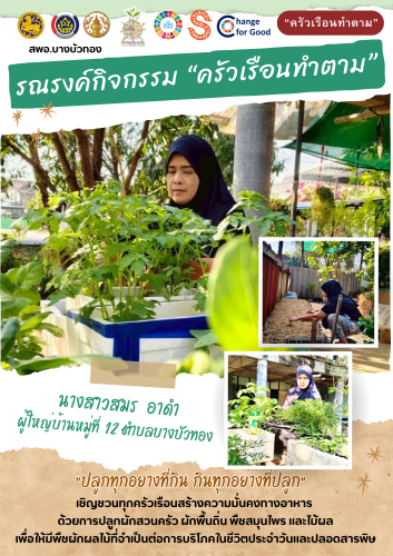 สพอ.บางบัวทอง ขับเคลื่อน "ครัวเรือนทำตาม" สร้างความมั่นคงทางอาหาร "ปรับเปลี่ยนดี ชีวีมีสุข" (Change for 5G Plus)