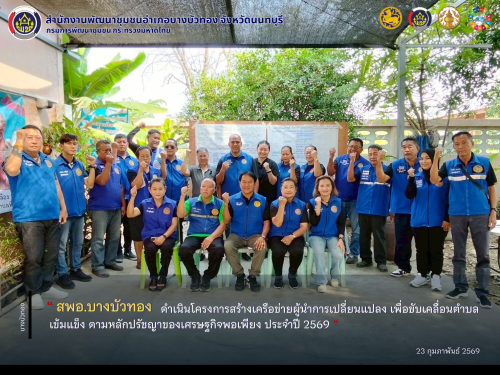 สพอ.บางบัวทอง ดำเนินโครงการสร้างเครือข่ายผู้นำการเปลี่ยนแปลง เพื่อขับเคลื่อนตำบลเข้มแข็ง ตามหลักปรัชญาของเศรษฐกิจพอเพียง ประจำปี 2569