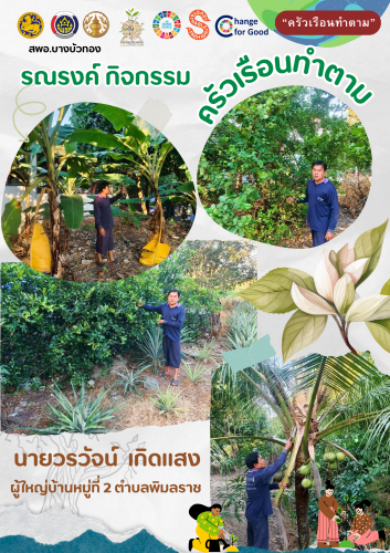 สพอ.บางบัวทอง ขับเคลื่อน "ครัวเรือนทำตาม" สร้างความมั่นคงทางอาหาร "ปรับเปลี่ยนดี ชีวีมีสุข" (Change for 5G Plus)