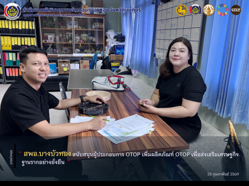 สพอ.บางบัวทอง สนับสนุนผู้ประกอบการ OTOP เพิ่มผลิตภัณฑ์ OTOP เพื่อส่งเสริมเศรษฐกิจฐานรากอย่างยั่งยืน