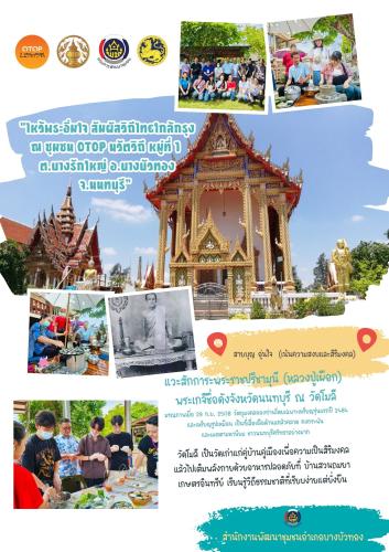"ไหว้พระอิ่มใจ สัมผัสวิถีไทยใกล้กรุง ณ ชุมชน OTOP นวัตวิถี หมู่ที่ 1 ตำบลบางรักใหญ่ อ.บางบัวทอง จังหวัดนนทบุรี "