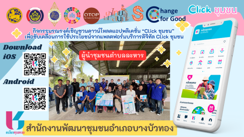 สพอ.บางบัวทอง ขับเคลื่อนงานแอปพลิเคชั่น “Click ชุมชน” ดำเนินกิจกรรมรณรงค์เชิญชวนดาวน์โหลดแอปพลิเคชั่น "Click ชุมชน"