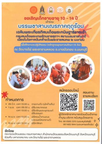 ประชาสัมพันธ์โครงการบรรพชาสามเณรภาคฤดูร้อน เฉลิมพระเกียรติสมเด็จพระกนิษฐาธิราชเจ้า กรมสมเด็จพระเทพรัตนราชสุดาฯ สยามบรมราชกุมารี เนื่องในโอกาสวันคล้ายวันพระราชสมภพ 2 เมษายน